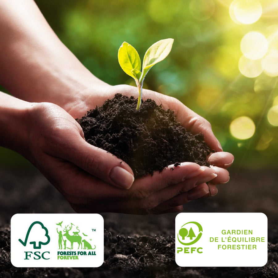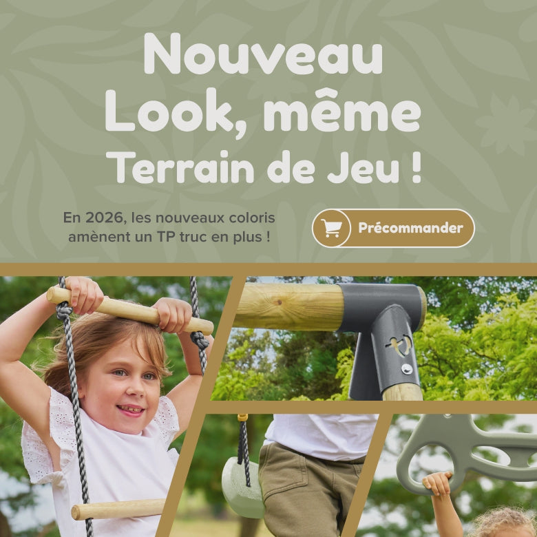 TP est là pour le long terme, et nous voulons nous assurer que notre planète le soit aussi... Fabriquer des jouets d'extérieur pour les enfants, nous rend très conscients de la planète dans laquelle nous voulons qu'ils grandissent. Ainsi, notre bois est fabriqué à partir de forêts certifiées FSC ou PEFC. Le Forest Stewardship Council® est une organisation non gouvernementale internationale qui promeut une gestion forestière responsable en veillant à ce que la coupe de bois et de produits non ligneux préserve la biodiversité, la productivité et les processus écologiques de la forêt. Chaque fois que vous achetez du bois ou des produits en bois, recherchez toujours le logo FSC.
