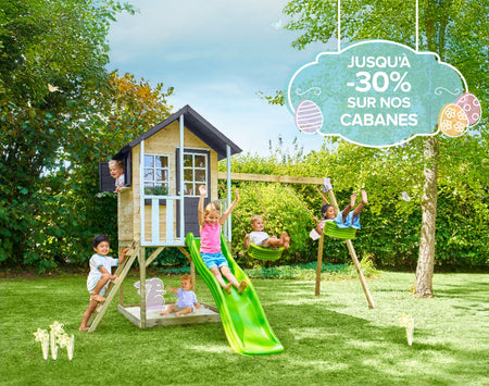 Offrez aux enfants leur propre univers avec nos cabanes enfant et maisonnettes en bois : un espace idéal pour inventer des histoires, jouer à l’extérieur et laisser libre cours à leur imagination. Qu’il s’agisse d’un refuge secret, d’une maison de jeu ou d’un coin lecture, nos cabanes sont conçues pour être à la fois accueillantes, résistantes et adaptées aux envies des petits explorateurs. Faites évoluer votre aire de jeux cabane avec en même temps que vos enfants grandissent grâce aux nombreux accessoires disponibles : toboggan, bras de portique simple ou double, cuisine