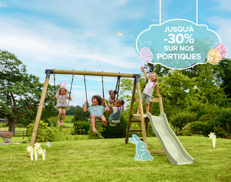 Créez des souvenirs inoubliables dans le jardin grâce à nos portiques balançoires. Conçus pour offrir des moments de jeu actifs et partagés, ils permettent aux enfants de se balancer, de se dépenser et de développer leur coordination, le tout en s’amusant. Selon les configurations, vous pouvez choisir un portique balançoire en bois ou en métal, une balançoire simple ou double ou encore une balançoire avec toboggan, idéale pour varier les activités.